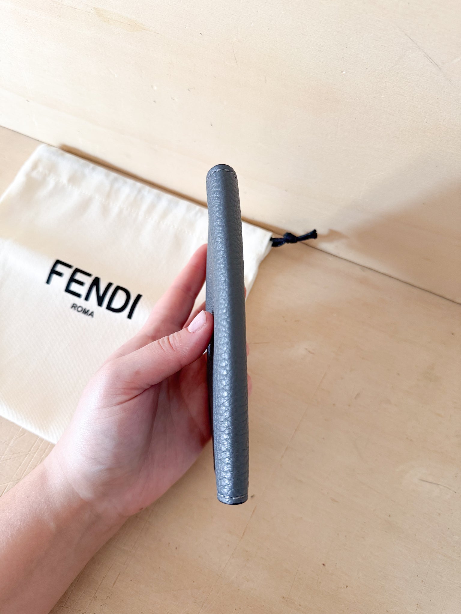 Fendi Porta Passaporto Pelle Martellata Antracite