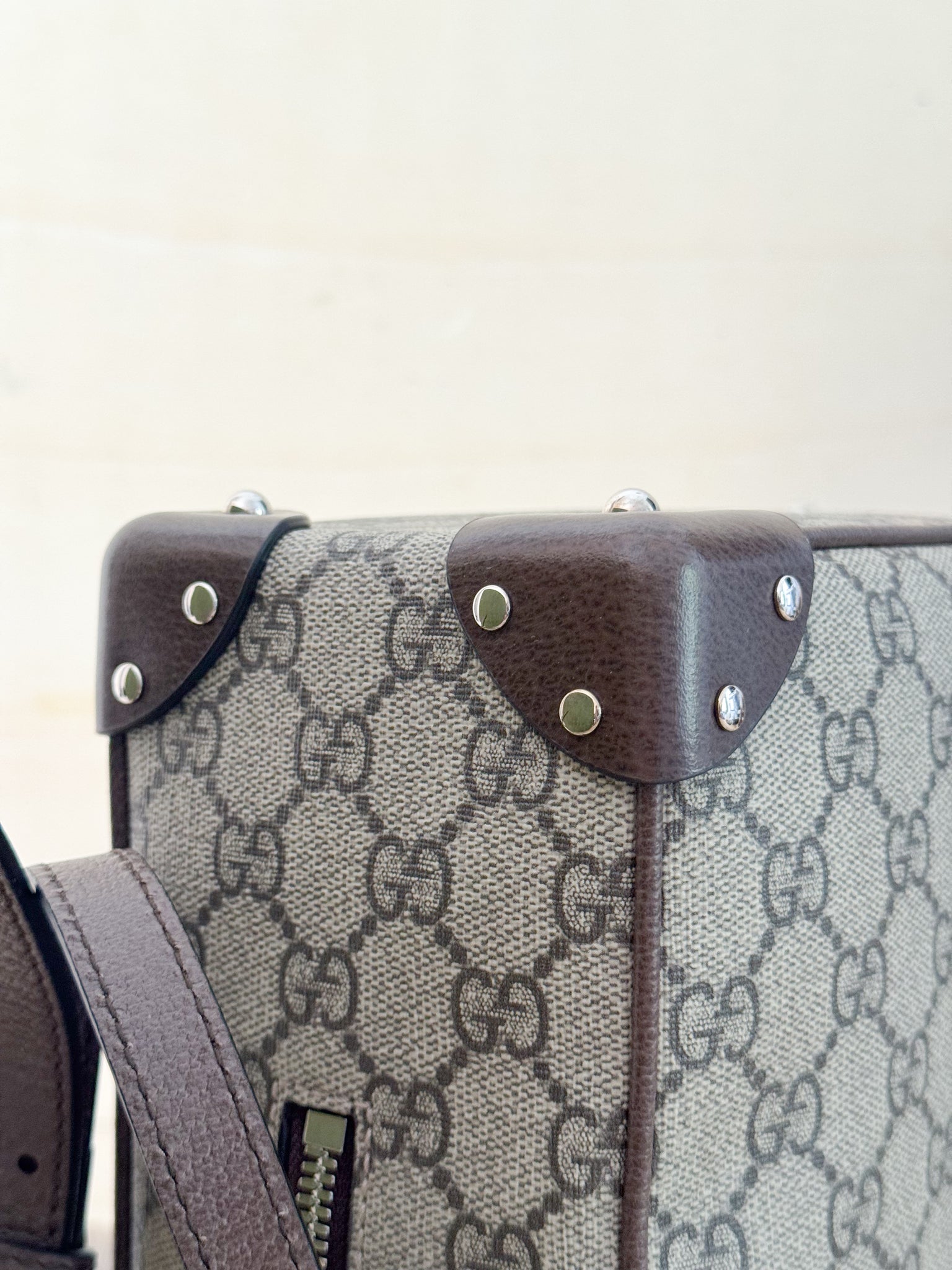 GG Supreme con riporti in pelle color testa di moro, hardware argento